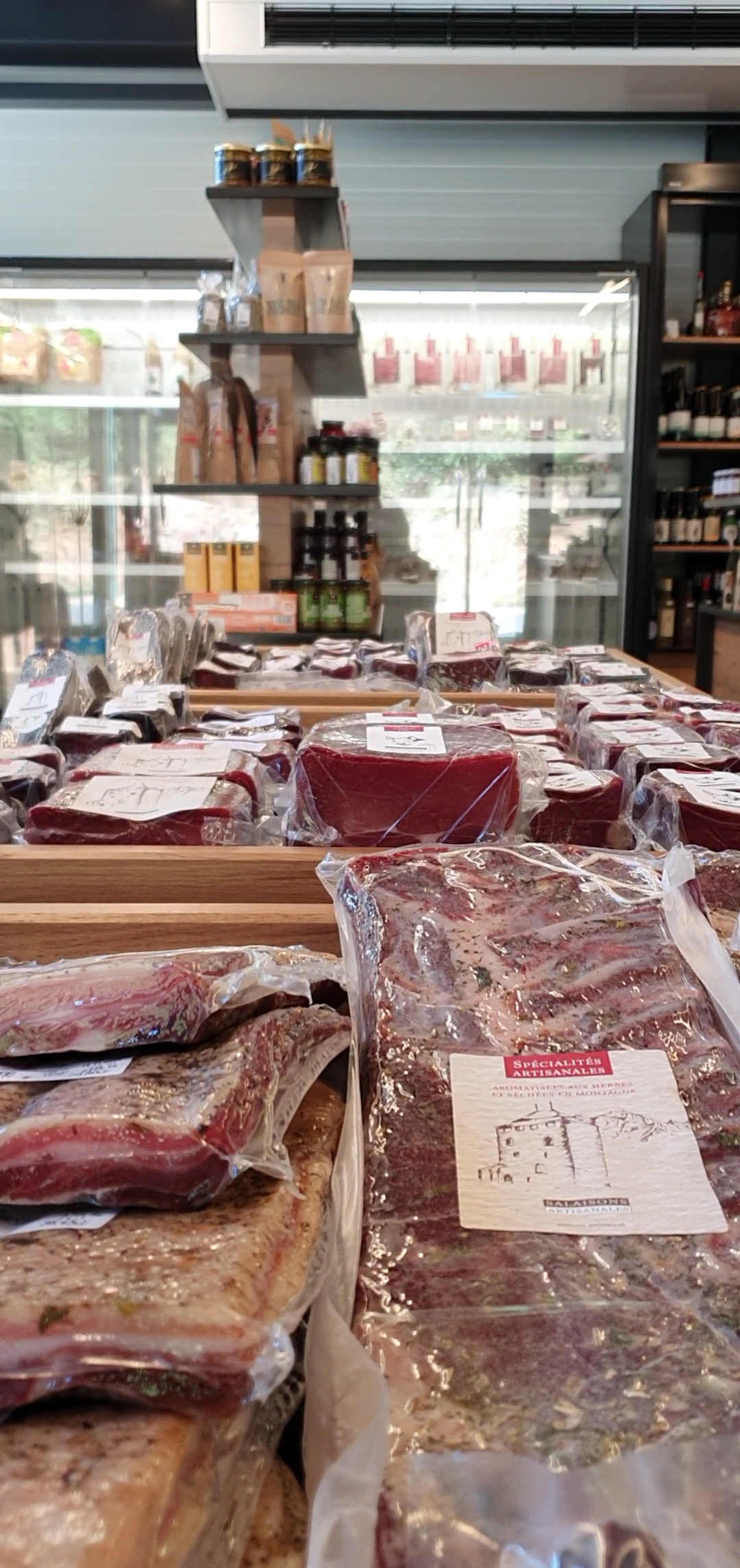 Hier finden Sie nicht nur unsere Trockenfleischprodukte, sondern auch frische süße und herzhafte Produkte, Wein und Spirituosen.